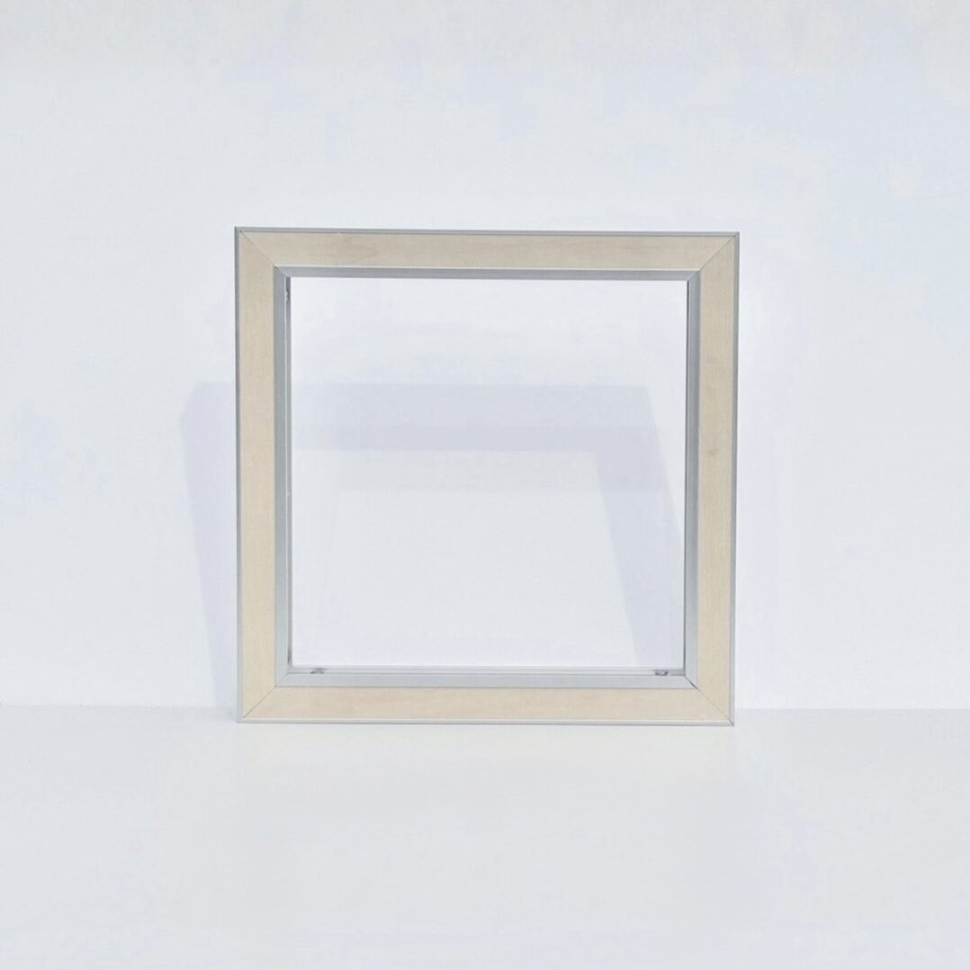 アルミニウムの高級な質感と、エレガントなフォルムを兼ね備えたキャンバスストレッチャー。キャンバスに重厚感を与える、4cmの枠高。
